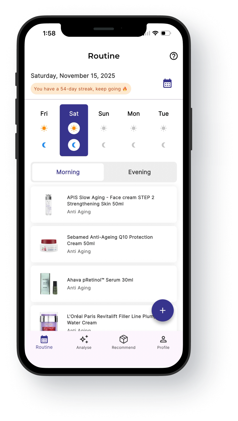 Experience the future of personalised skincare. Available now on iOS and Android.